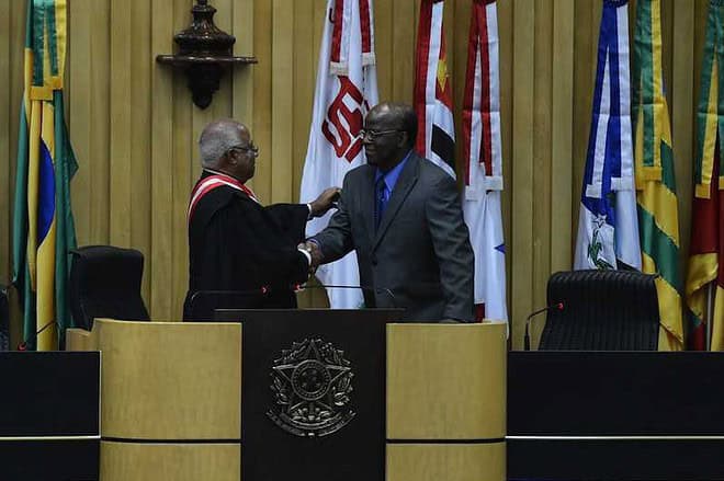 Ele desejou sorte ao novo presidente. “É o primeiro negro a ascender à presidência da corte. Assuma a presidência com tudo, por merecimento e votação unânime de seus pares”, disse a Reis de Paula.