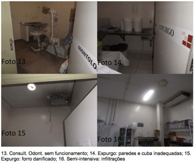 Segundo ainda o relatório, as infiltrações e acúmulo de mofo, evidenciam a ausência de material lavável e impermeável, além de alterações funcionais em diversos ambientes do projeto executado. Os funcionários também reclamaram que não há controle ou restrição no acesso ao local dos pacientes que chegam em ambulâncias. “A porta de acesso ao ambiente não tem nenhum tipo de trava. Esse fato já possibilitou, no passado, o acesso indesejado de pessoas não autorizadas, causando constrangimento e até mesmo atos de violência”. Os técnicos que elaboraram uma planilha especificando que há diferença de valores entre os serviços contratados e os efetivamente executados de acordo com o PTA.
