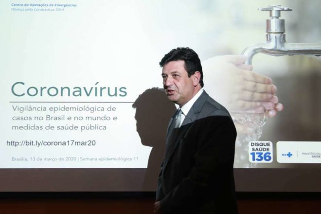 O ministro da Saúde, Luiz Henrique Mandetta, em coletiva de imprensa no dia 17 de março