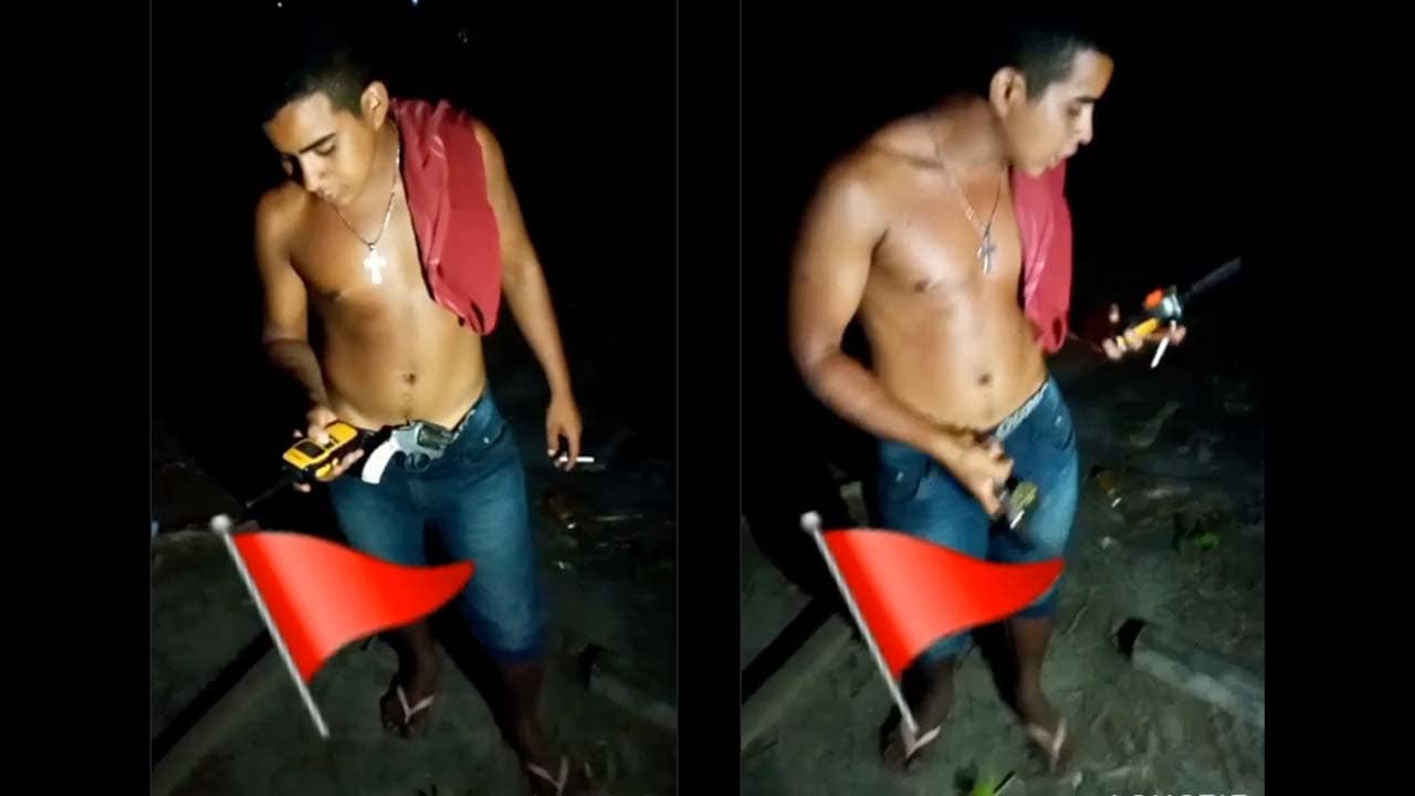 Vicente aparece em vídeo portando o revólver e o rádio antes de ser baleado – WhatsApp