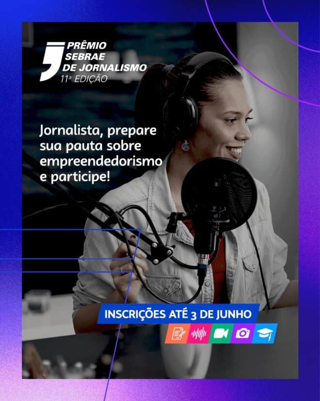 Reportagens veiculadas em emissoras de televisão e em canais de jornalismo nas plataformas digitais podem concorrer ao 11º Prêmio Sebrae de Jornalismo (PSJ). As inscrições estão abertas até o dia 3 de junho pelo site www.premiosebraejornalismo.com.br. Serão premiados os melhores conteúdos jornalísticos sobre empreendedorismo e pequenos negócios, veiculados entre 5 de junho de 2023 a 2 de junho de 2024.