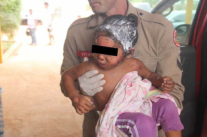 Resgatada 12 horas depois: Lamparina explode e deixa criança com rosto queimado