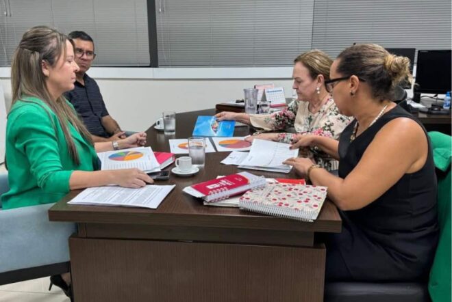 A presidente do TJAC, desembargadora Regina Ferrari, reuniu-se com a equipe técnica do Núcleo de Apoio Técnico em Saúde (Natjus), nesta quarta-feira, 17, para alinhamento no fluxo de serviço.