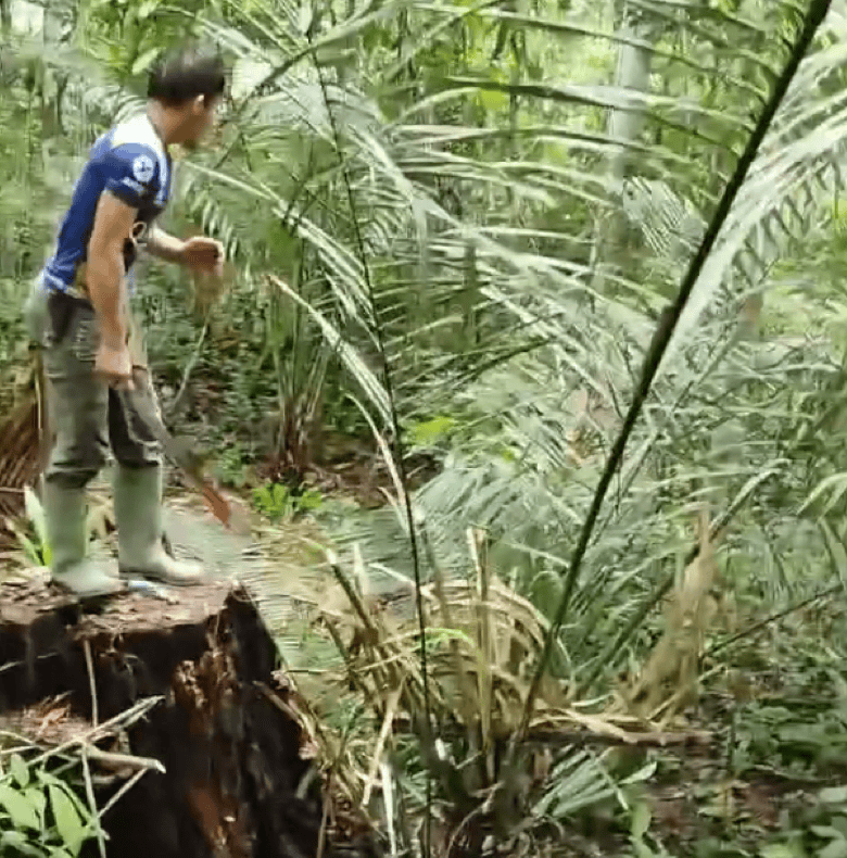 No vídeo, aparece um ribeirinho se defendendo dos animais com um terçado. Em certo momento, ao descer do tronco que está abrigado, o homem é perseguido pelo porco-do-mato