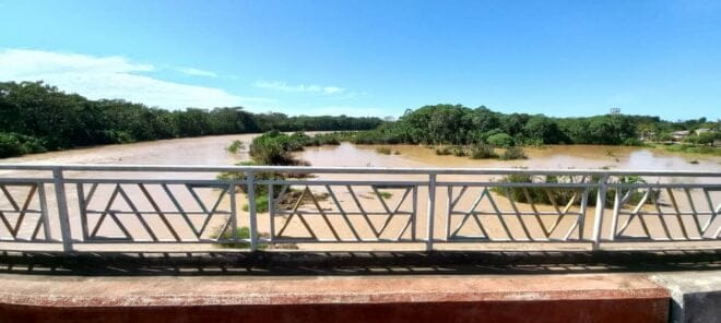 Na divisa entre os municípios de Brasiléia, Epitaciolândia e Cobija (BO), registro o aumento do rio Acre por volta do meio-dia deste sábado, dia 11 – Foto: Alexandre Lima