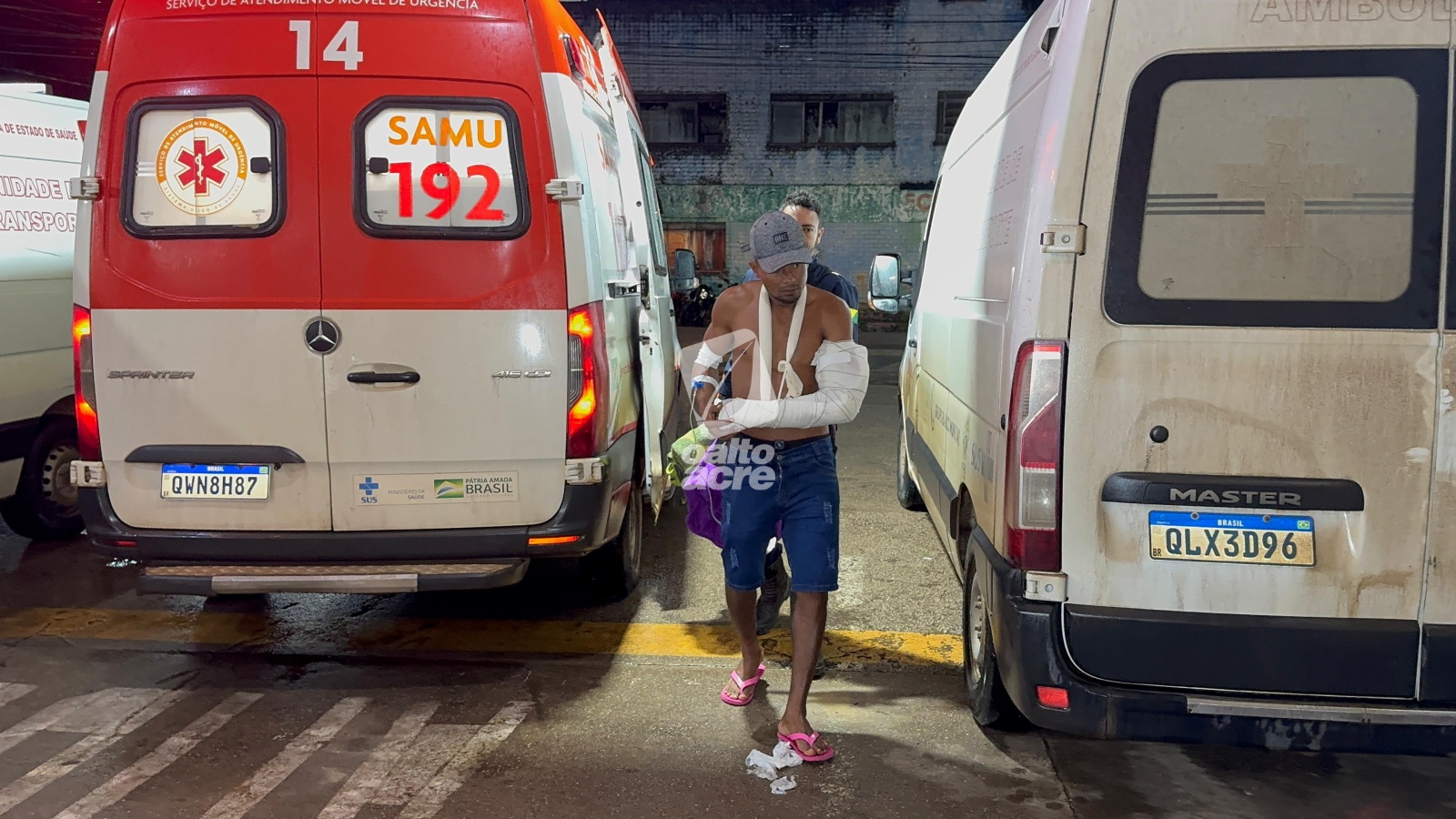 A guarnição se deslocou até a unidade hospitalar e constatou que a vítima já recebia atendimento médico, apresentando perfuração no braço esquerdo provocada por arma de fogo.