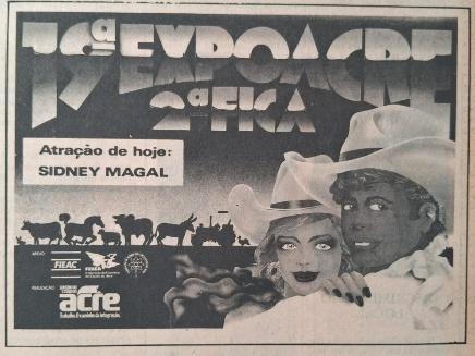 Em 1985, entre 31 de agosto a 8 de setembro, é realizada a 14ª Feira Agropecuária e Industrial de Rio Branco. As atrações musicais do evento foram os shows da banda carioca Piloto Automático, e atração musical acreana ficou a cargo de Osmir Netto, Sérgio Souto, Grupo Capu, Carlinhos Alvorada, o sambista Da Costa, Jorge Cardoso, e Endy Jorge.