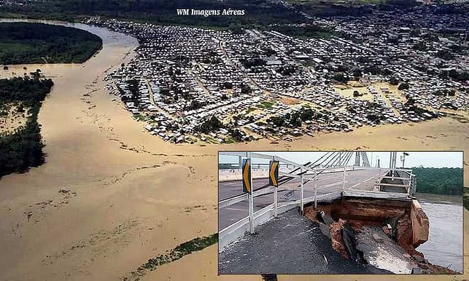 A força das águas do Rio Tarauacá fez com que parte da cabeceira da ponte sobre o manancial desmoronasse. Nesta segunda-feira, 28, como todos os anos acontece, um queda de pedras foi registrada de um serviço paliativo feito anteriormente, colocando em risco a trafegabilidade. Somente em meia pista é possível a passagem de veículos e até o momento nenhum órgão de controle tomou providências com relação ao tráfego de veículos pesados, que podem comprometer o restante que ainda não caiu.