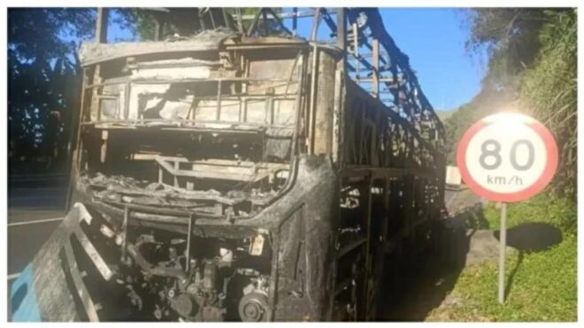 Quando percebeu o fogo, o motorista parou o ônibus no acostamento e todos os passageiros foram retirados. Algumas malas foram recuperadas, mas outras foram consumidas pelas chamas.