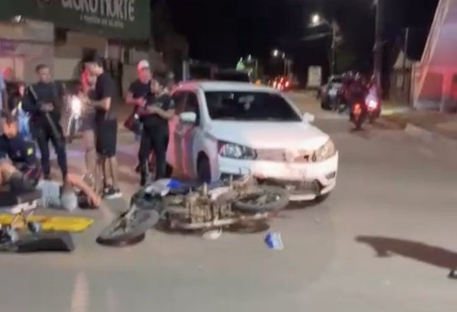 Motociclista sofre fratura no fêmur após colisão com carro no centro de Brasiléia