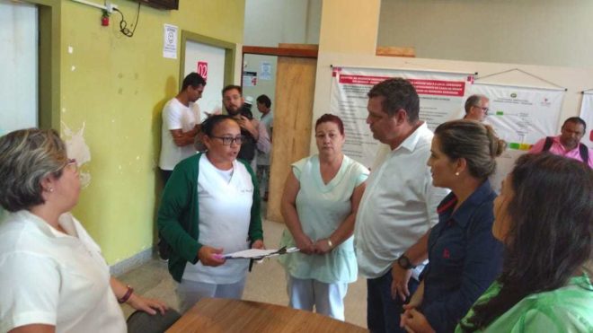 Logo ao entrar no Huerb, Rocha foi recebido pelos profissionais de saúde e também por pacientes que estavam reclamando do atendimento. Ao entrar no setor de consultas, o governador já se deparou com a porta quebrada. Ele conversou com médicos e enfermeiros que relataram que neste primeiro momento não falta remédio, mas sim alguns insumos.