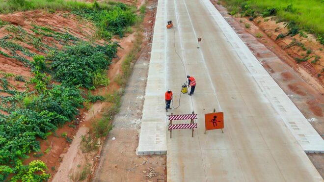 Com um avanço físico de mais de 32%, estamos executando trabalhos de conformação de aterragem, sistema de drenagem, pavimentação, concreto, entre outros. Foto: cedida