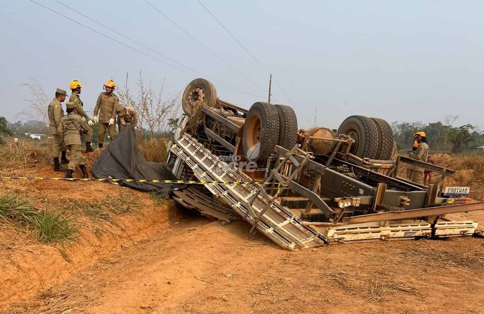 Vídeos; Motorista morre após caminhão capotar em ramal na zona rural de Xapuri