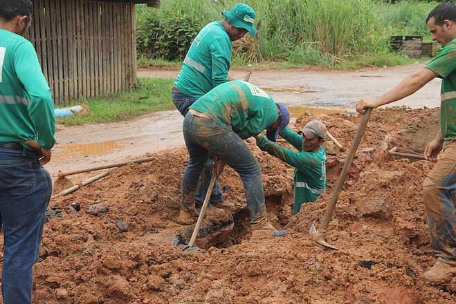 Funcionários do Depasa em Braisléia tiveram que cavar manualmente para sanar o problema – Foto: Alexandre Lima