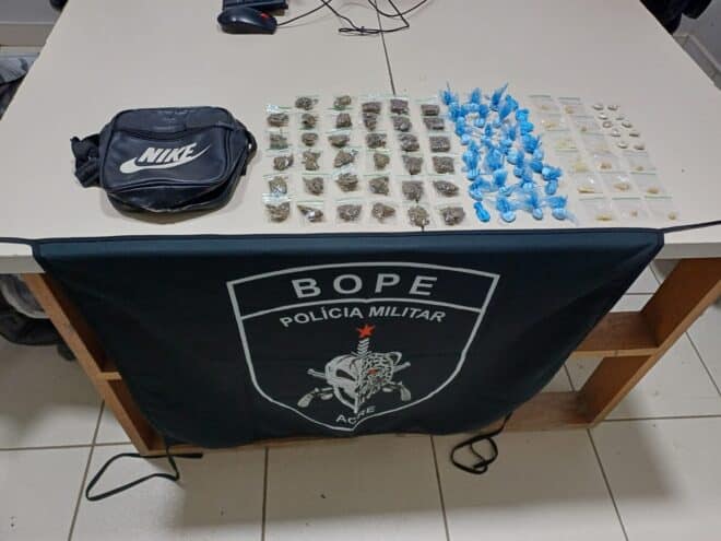 Uma ação do BOPE, por meio da companhia ROTAM Alfa, resultou na prisão de João Lucas Simão Barbosa, de 27 anos, na noite deste sábado (22), na Rua da Sanacre, bairro Ayrton Senna, em Rio Branco. Ele é suspeito de envolvimento com o tráfico de drogas.