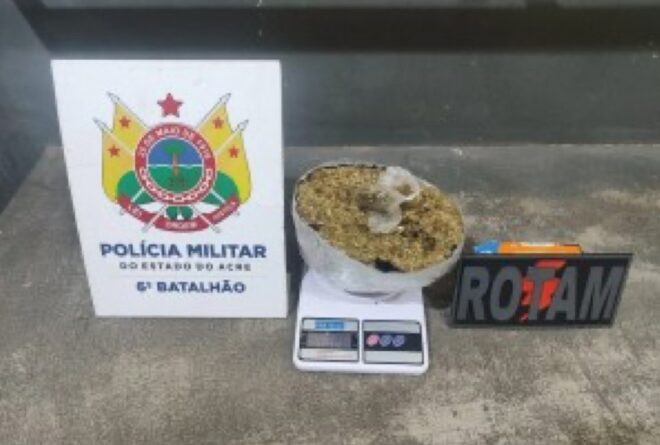A Polícia Militar do Acre apreendeu 526 gramas de maconha durante uma ação da ROTAM do 6º Batalhão no bairro Remanso, em Cruzeiro do Sul. Durante patrulhamento a pé em becos e vielas, os militares avistaram um homem já conhecido em abordagens anteriores que, ao perceber a presença policial, acelerou o passo e fugiu após ser ordenado a parar.