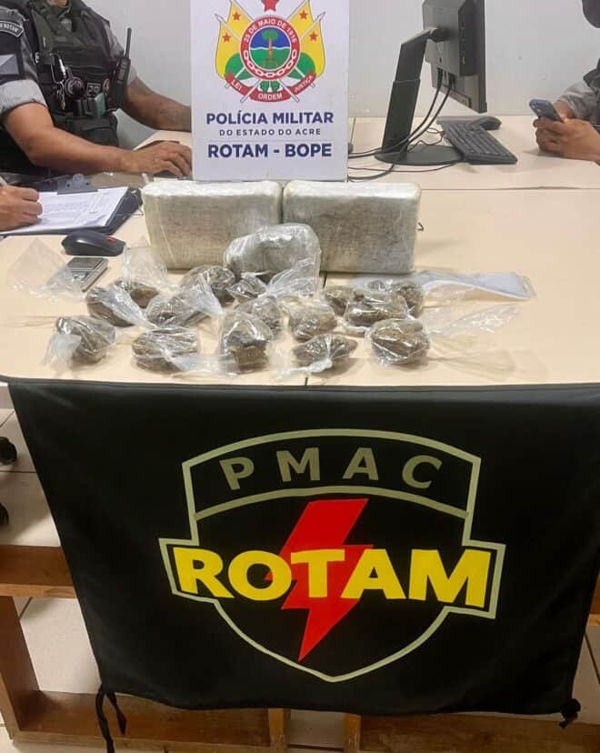 Equipes da Companhia Rotam, do Batalhão de Operações Especiais da Polícia Militar do Acre (BOPE/PMAC), realizaram duas ações distintas de combate ao tráfico de drogas, na noite de terça feira, 23, que resultaram na prisão de um homem e na apreensão de entorpecentes em bairros diferentes da capital.