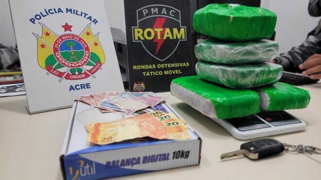 O veículo, o entorpecente e a mulher foram conduzidos a Delegacia Central de Flagrantes – DEFLA, para as providências cabíveis.