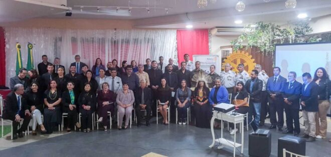 Numa solenidade repleta de muito simbolismo, a governadora do Rotary Internacional do distrito 4720, Elaine Ruiz e a presidente do Rotary Club Rio Branco, doutora Rosineia Frota, deram posse ao primeiro Club rotariano do Alto Acre, batizado de Eduardo Saadi.