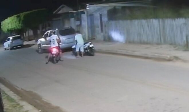 Registro de dois criminosos flagrados furtando uma moto no bairro Ferreira Silva em julho de 2023, em Brasiléia. Foto: captada