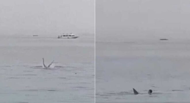 Antes de desaparecer na água, o homem é visto emergir e submergir diversas vezes, sob o cerco ininterrupto do predador. Assista abaixo (ATENÇÃO: IMAGENS FORTES A SEGUIR!).