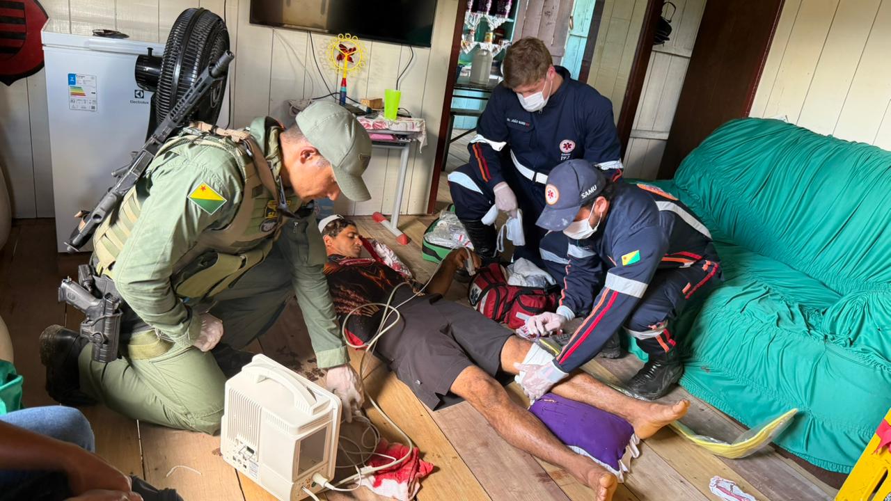 O morador da Comunidade Bahia, no Rio Juruá Mirim, Nerinilton do Nascimento, é mais um cidadão acreano que recebe atenção e cuidado do governo do Acre em localidade de difícil acesso. O resgate aeromédico, realizado pelo Centro Integrado de Operações Aéreas (Ciopaer) e Serviço de Atendimento Móvel de Urgência (Samu), na tarde deste sábado, 4, trouxe o paciente, vítima de ferimento acidental por arma de fogo, para ser atendido no Hospital do Juruá, em Cruzeiro do Sul.