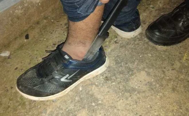 Durante abordagem, os policiais constataram que ele estava armado com uma faca peixeira, que estava escondida no sapato. Ele recebeu voz de prisão e foi levado ao presídio local para cumprimento de sua pena judicial.