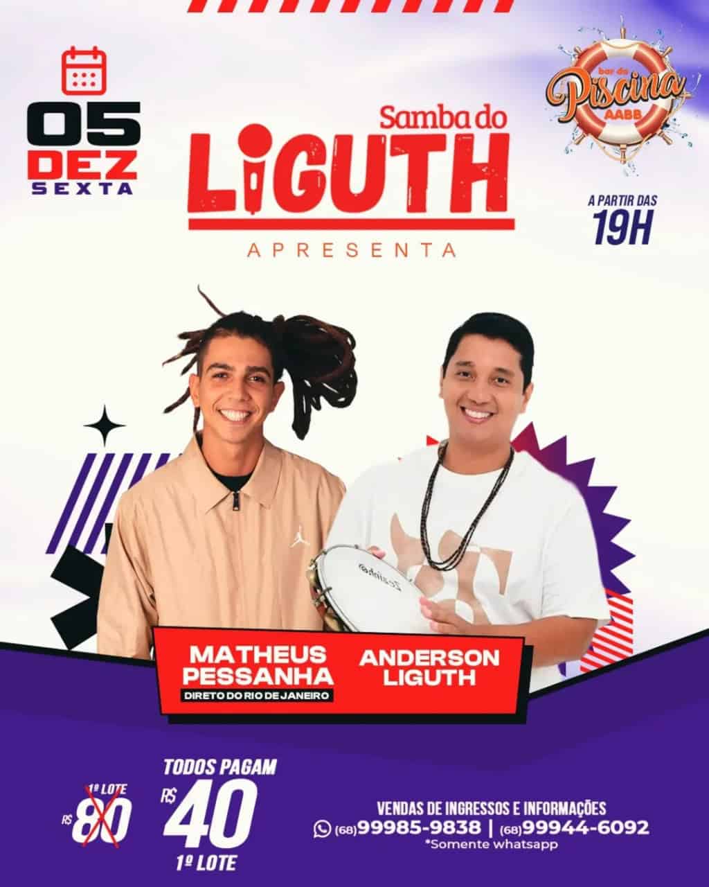 O projeto Samba do Liguth realiza no dia 5 de dezembro, às 19h, no Bar da Piscina da AABB, a última edição do ano em alusão ao Dia Nacional do Samba. O encontro reúne artistas locais e recebe o músico carioca Matheus Pessanha, que integra a nova geração do samba no Rio de Janeiro.