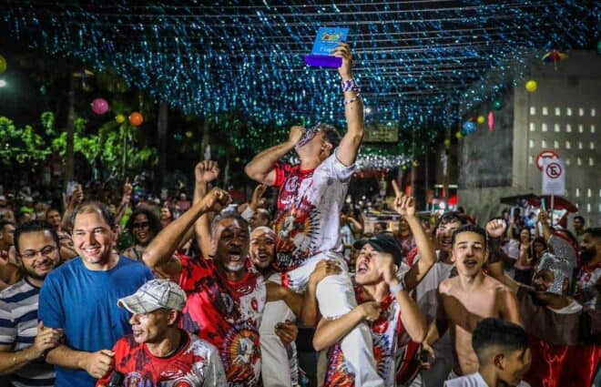 Após mais de 6h de competição, o grupo Sambase, do bairro Base, se sagrou campeão do carnaval 2023 com 119 pontos, na madrugada desta quarta-feira, 22, na avenida Getúlio Vargas, em Rio Branco. Em segundo, ficou o grupo Unidos do Fuxico e, por último, o bloco 6 é Demais.
