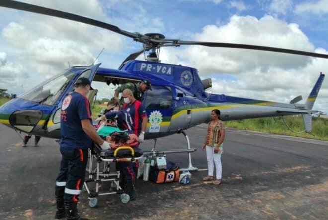 O governo do Acre, por meio do Serviço de Atendimento Móvel de Urgência (Samu), em parceria com o Centro Integrado de Operações Aéreas (Ciopaer), realizou na manhã desta quinta-feira, 24, o resgate de uma criança indígena no município de Assis Brasil, na Aldeia Peri, do Povo Manchineri.