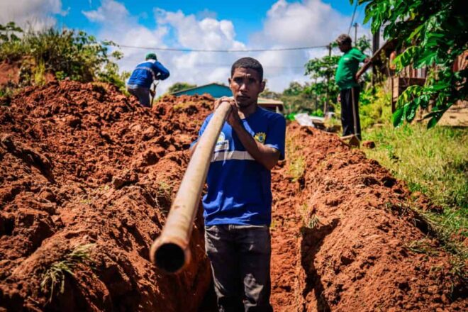 José dos Santos, morador há 10 anos na Rua São Rafael, destaca seu contentamento com a ação governamental: “É muito importante para nossa comunidade. Esperava tanto por essa hora e agora tá chegando; parabéns, água é vida e esperança”.