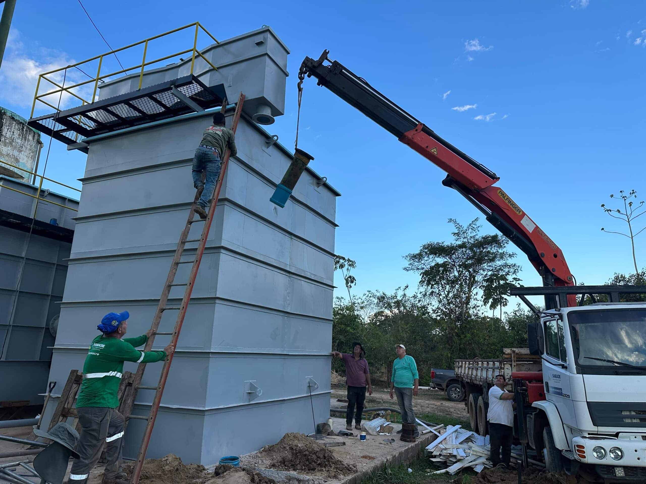 Saneacre avança em instalação da nova estação de tratamento de água de Xapuri e inicia conexão ao sistema de captação