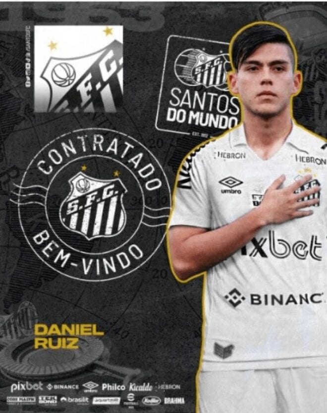O Santos acertou nesta terça-feira (7) a contratação do meia-atacante Daniel Ruiz, de 21 anos. A jovem promessa do futebol colombiano chega por empréstimo junto ao Millonarios (COL) até o fim de 2023, com opção de compra e valor fixado.