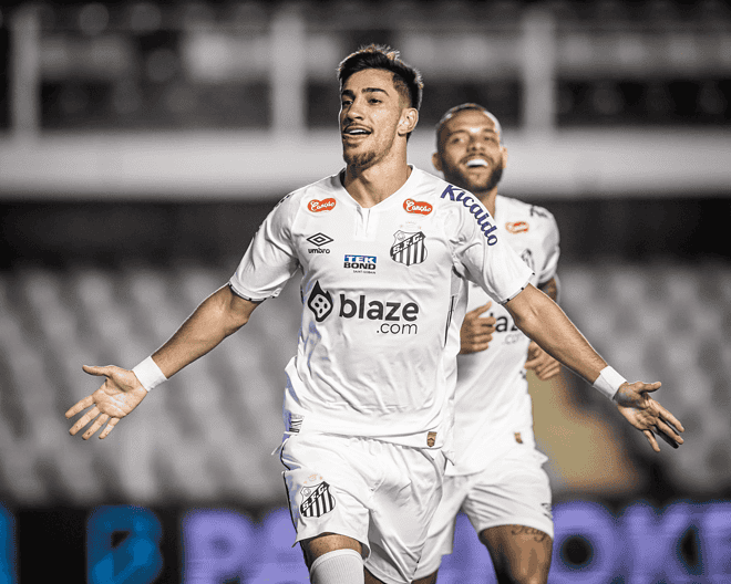 Já aos 23, a rede enfim balançou. Pedrinho foi acionado na ponta direita, invadiu a área em bela jogada individual e bateu no cantinho para marcar um belo gol e colocar o Santos na frente.