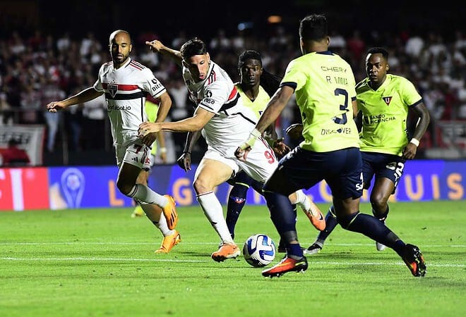 Cartões amarelos: Quiñonéz, Ibarra, Ricardo Adé, Guerrero (LDU); Michel Araújo (São Paulo)