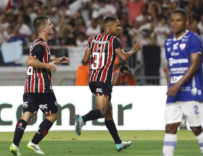 São Paulo: Jandrei; Moreira, Diego Costa (Sabino, 25/2), Ferraresi e Patryck; Luiz Gustavo (Bobadilla, 20/2), Nestor (Rodriguinho, 20/2) e Galoppo; Michel Araujo (Ferreira, 20/2), Juan e Erick (William, 31/2). Técnico: Luis Zubeldía.