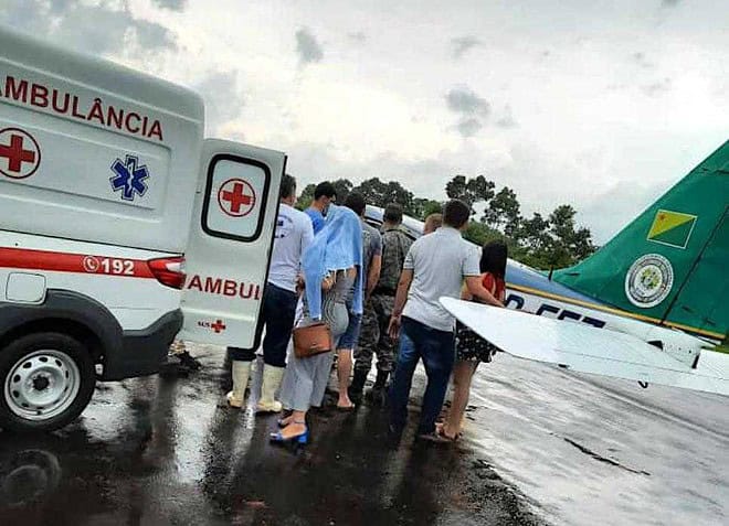 Momento em que o militar foi embarcado no avião do Estado para ser tratado na Capital acreana durante a tarde desta terça-feira, dia 20.