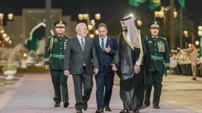 Lula ainda comemorou a adesão dos sauditas aos Brics e quer, agora, que Riad ajude a fortalecer o Banco dos Brics. A meta seria a de “mudar as facetas dos bancos multilaterais”.