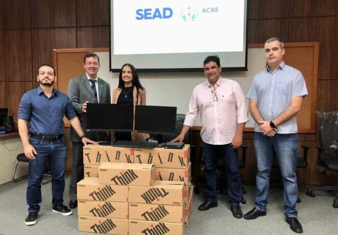 Visando contribuir para a modernização das secretarias e atualização dos sistemas, o governo do Estado, por meio da Secretaria de Estado de Administração (Sead), realizou nesta quinta-feira, 9, a entrega de 180 computadores e 250 cadeiras ergonômicas para o setor de Recursos Humanos de todas suas secretarias do Estado, no auditório da Organização em Centros de Atendimento (OCA), em Rio Branco.