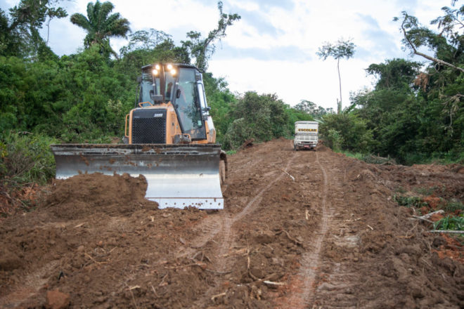Máquina faz serviço de terraplanagem em ramal na zona rural de Rio Branco; governo Gldason Cameli quer recuperar 1.000 km (Foto: Arquivo/Secom)