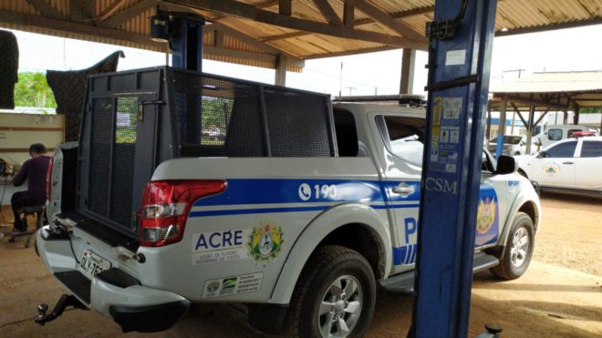Desde o início da semana, parte da frota operacional da Polícia Militar do Acre está recebendo a instalação de celas (xadrez), que estão sendo montadas em caminhonetes 4 x 4, usadas no policiamento ostensivo em todos os batalhões. Os equipamentos vão garantir maior segurança para os policiais no exercício da função e a integridade física dos conduzidos.