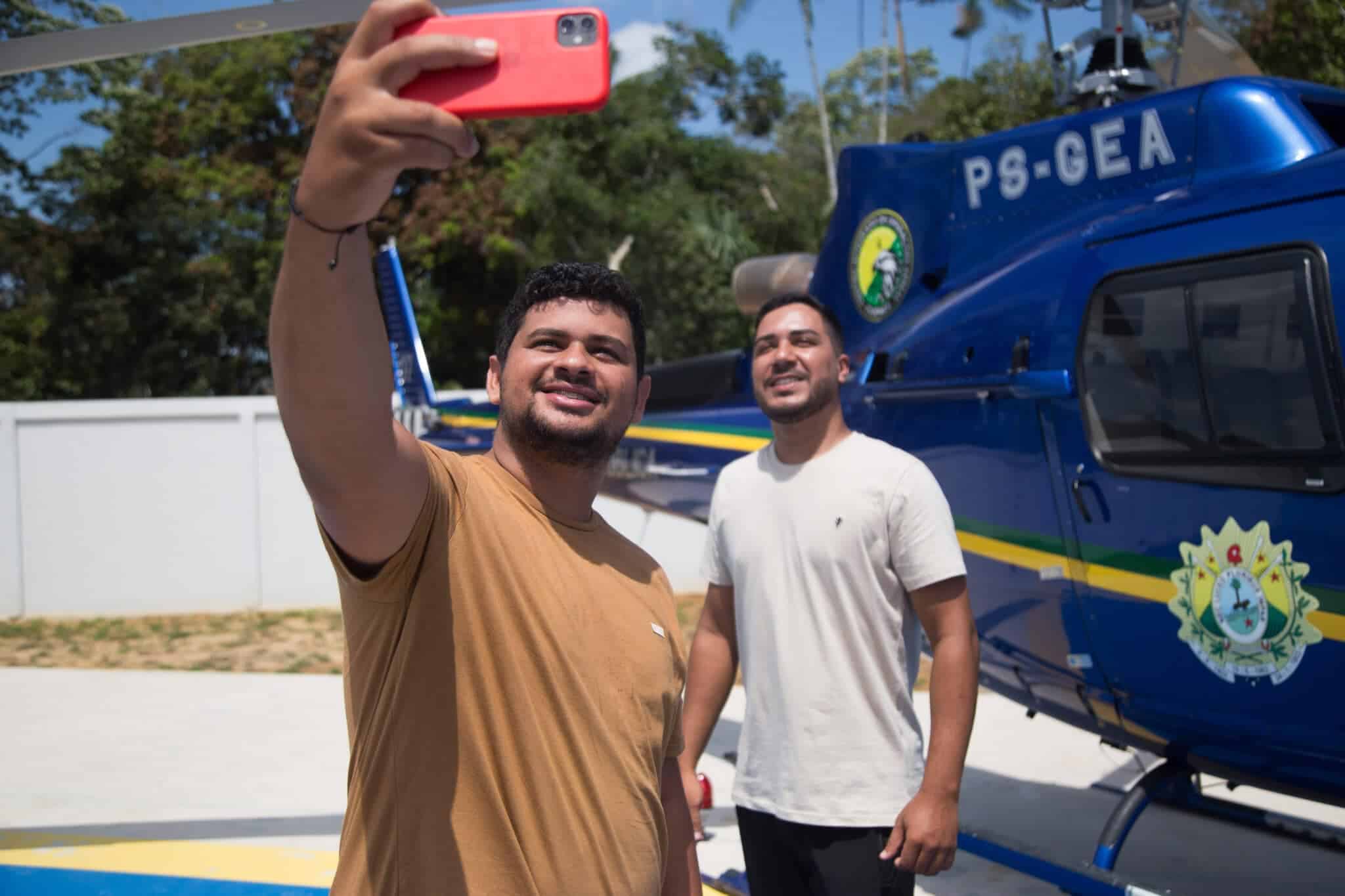 Heberte convidou um amigo para acompanhá-lo no voo. Foto: Dhárcules Pinheiro/Sejusp