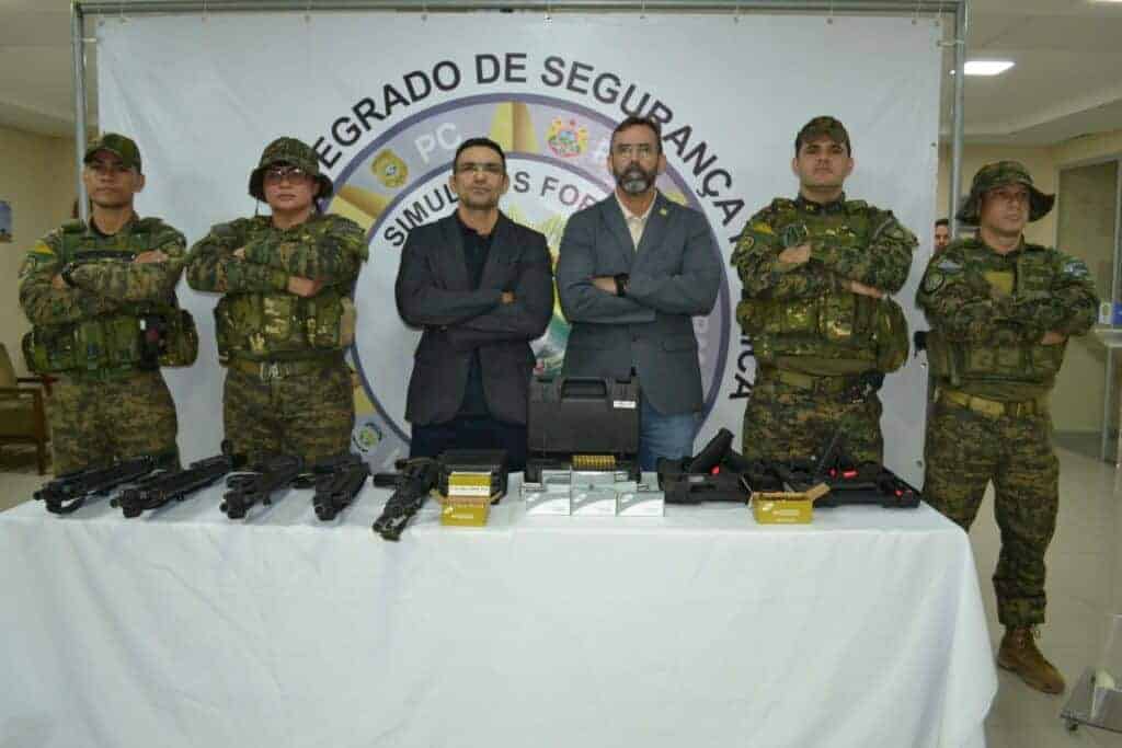 O material militar é uma cautela da Secretaria Nacional de Segurança Pública (Senasp) e tem como objetivo reforçar as duas forças de segurança do Estado, com 40 pistolas, 10 carabinas e 2 fuzis.