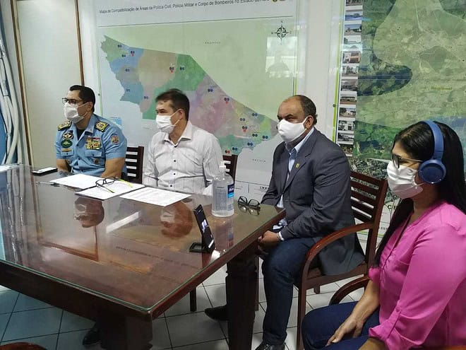 Na manhã desta quinta-feira, 23, o secretário Paulo Cézar Santos, juntamente com o comandante geral da Polícia Militar do Acre e o delegado-geral da Polícia Civil, Henrique Maciel, realizou uma videoconferência com os prefeitos dos municípios de Xapuri, Bujari, Sena Madureira, Manoel Urbano, Mâncio Lima, Porto Acre e Marechal Thaumaturgo para discutir a segurança e alinhar as necessidades desses municípios durante o período de isolamento social.