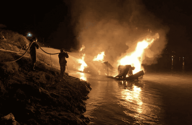 A embarcação, onde havia 18 pessoas a bordo, era abastecida com 5 mil litros de gasolina quando aconteceuum curto circuito de uma bateria que ocasionou a explosão.