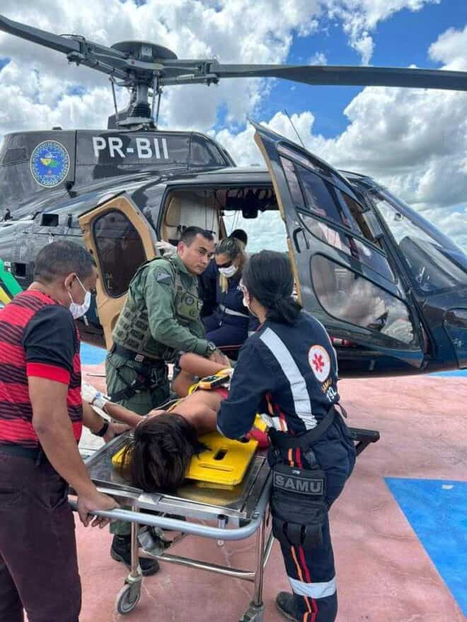 O resgate ocorreu na tarde desta quinta-feira, 6, o helicóptero do CIOPAER pousou no heliponto do Pronto Socorro de Rio Branco e a criança foi encaminhada para cuidados médicos.