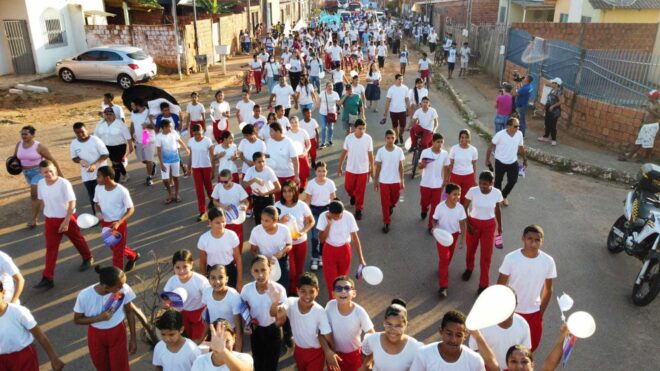 Em defesa da igualdade, direitos e deveres dos cidadãos, a Secretaria de Justiça e Segurança Pública do Estado (Sejusp), por meio do programa Acre pela Vida, reuniu centenas de alunos, professores, servidores, funcionários de escolas e a comunidade do Complexo Habitacional Cidade do Povo, na tarde deste sábado,12, em uma Caminhada pela Paz.