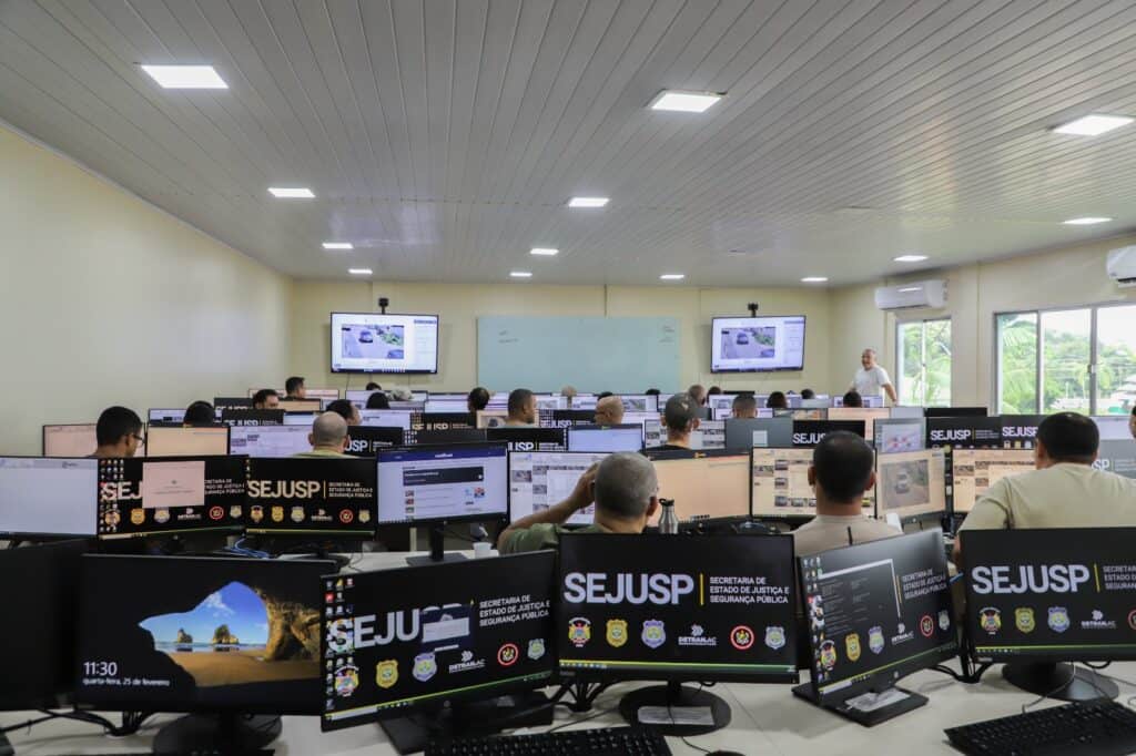 A Secretaria de Estado de Justiça e Segurança Pública do Acre (Sejusp) realizou, nos dias 24 e 25 de fevereiro, uma capacitação técnica voltada ao uso de tecnologias aplicadas ao monitoramento urbano. O treinamento foi realizado no Centro Integrado de Ensino e Pesquisa em Segurança Pública (CIEPS) e reuniu profissionais responsáveis pela operação dos sistemas de videomonitoramento, reconhecimento facial e leitura de caracteres (OCR).