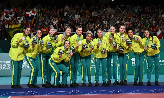 O sonho era o ouro, mas a medalha de prata foi muito comemorada, na noite desta quinta-feira (26), pela seleção brasileira feminina de vôlei nos Jogos Pan-Americanos, que estão sendo disputados em Santiago (Chile). Isto porque o Brasil, que era representado na competição por uma equipe formada por jovens atletas, foi derrotado na decisão, por 3 sets a 0 (parciais de 26/24, 25/16 e 25/19), pelo time principal da República Dominicana, que acaba de garantir a classificação para os Jogos Olímpicos de Paris.