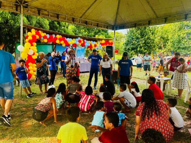 A segunda edição da Semana do Brincar, iniciativa do presidente da Câmara Municipal de Rio Branco, vereador Joabe Lira (UB), foi realizada neste sábado, 18, na Travessa Bom Jesus, nº 530, bairro Vila Acre, no Segundo Distrito de Rio Branco. A ação reuniu dezenas de crianças e famílias em uma tarde de lazer, com brincadeiras, distribuição de lanches e atividades educativas voltadas à convivência e ao fortalecimento comunitário.